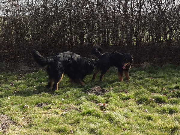vom Fleischereck, ein schon erfahrener Deckrüde, begrüßte Hella stürmisch,